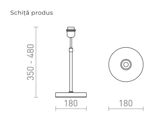Baza dispune de înălțime reglabilă, permițând ajustarea poziției luminii în funcție de preferințe și necesități. Este prevăzută cu racord E27, fiind compatibilă cu o varietate de becuri și abajururi, pentru a crea atmosfera dorită în locuința ta.
