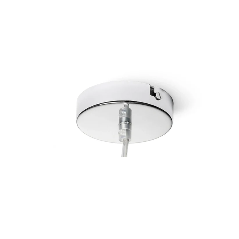 Set pentru suspendare cu elemente cromate, cablu transparent și soclu E27, conceput pentru un aspect modern și elegant. Este potrivit pentru suspendarea unei varietăți de abajururi textile, oferind versatilitate și integrare ușoară în diferite stiluri de amenajare interioară.