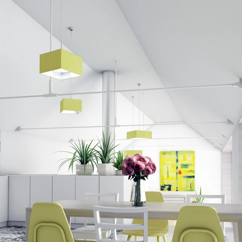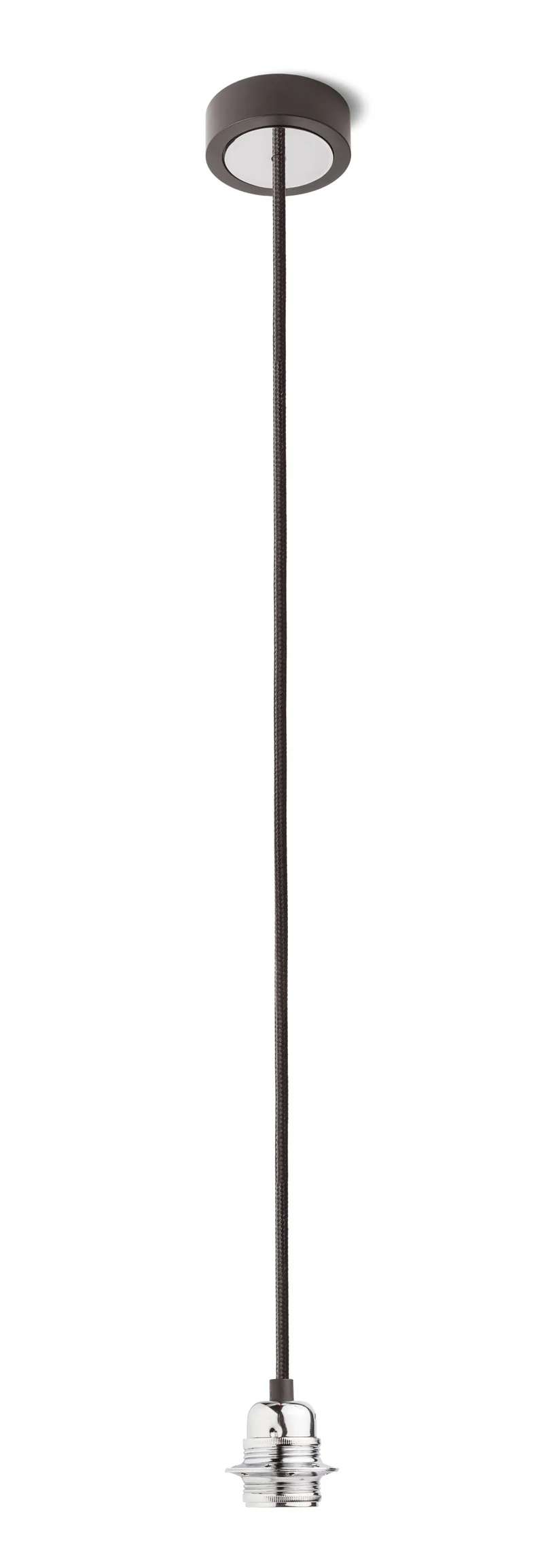 Set suspendat cu bază din aluminiu vopsit, dulie metalică E27 și cabluri textile, ideal pentru utilizare individuală sau pentru suspendarea abajururilor ușoare. Designul său minimalist și elegant îl face potrivit pentru diverse stiluri de amenajare.