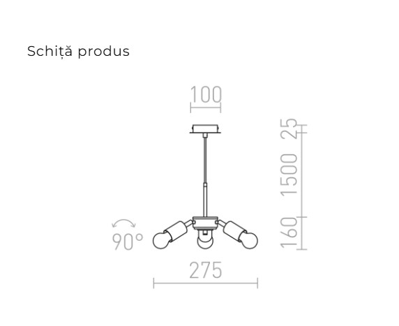 Set suspendat prevăzut cu trei dulii E27, poziționate la un unghi de 90°, oferind un efect vizual dinamic și o distribuție eficientă a luminii. Designul modern și funcțional îl face potrivit pentru iluminarea spațiilor rezidențiale sau comerciale.