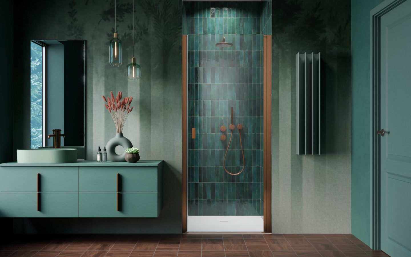 Cabina de duș Nes 6 Brushed Copper DWJ I se evidențiază prin designul modern și finisajul sofisticat în nuanță cupru periat, ideal pentru băile elegante și contemporane. Tonurile calde și textura mată adaugă un plus de rafinament și transformă spațiul de duș într-un element de design distinct.
