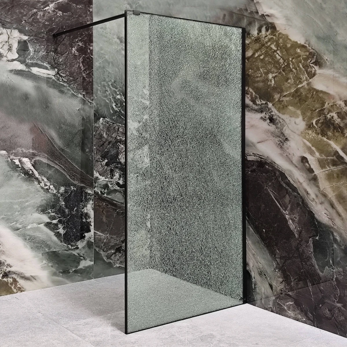 Realizat din sticlă securizată rezistentă, peretele oferă siguranță și durabilitate în utilizare, iar profilul negru adaugă un accent sofisticat, inspirat din stilul industrial. Designul walk-in, fără ușă, asigură acces facil și contribuie la crearea unui ambient aerisit și spațios.