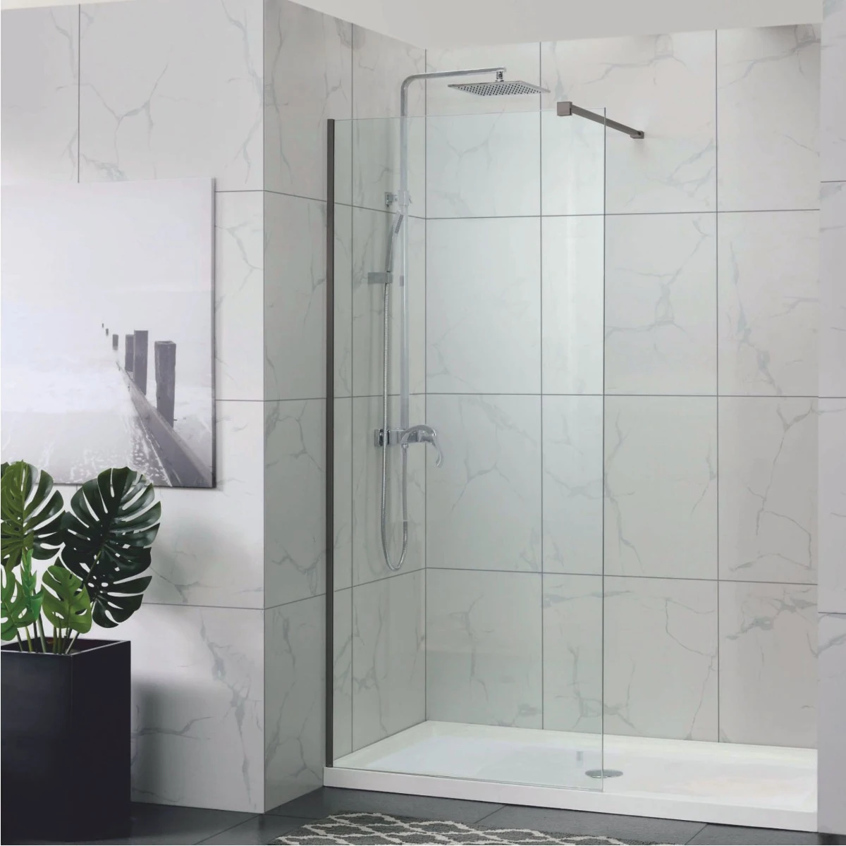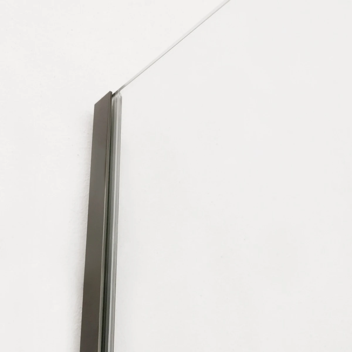 Peretele este fabricat din sticla securizata, transparenta, cu grosimea de 8 mm. Profilul confectionat din inox prezinta finisaj gun metal, aducand astfel un strop de eleganta si rafinament spatiului sanitar. Aveti posibilitatea sa va ajustati intrarea aproximativ 400 mm prin debitarea bratului de fixare.