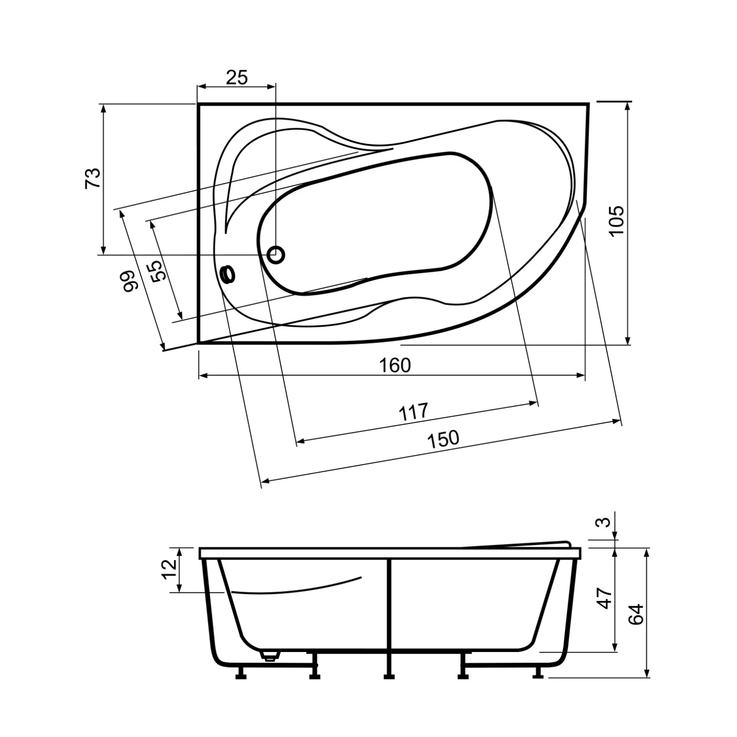 Cada CARINA este o cadă asimetrică modernă, proiectată pentru a combina confortul și funcționalitatea, fiind potrivită pentru orice baie. Cu dimensiunile de 150 x 105 x 64 cm, aceasta oferă un spațiu generos pentru relaxare, optimizând totodată centrul încăperii și permițând o integrare ușoară în spații de diferite dimensiuni.