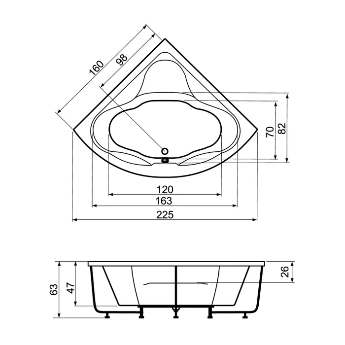 Cada MASSIMO 160 x 160 x 63 cm este concepută pentru a oferi o experiență de baie spațioasă și confortabilă, combinând eleganța cu funcționalitatea. Destinată montajului pe colț, aceasta valorifică eficient spațiul băii, oferind în același timp o zonă generoasă pentru relaxare completă.