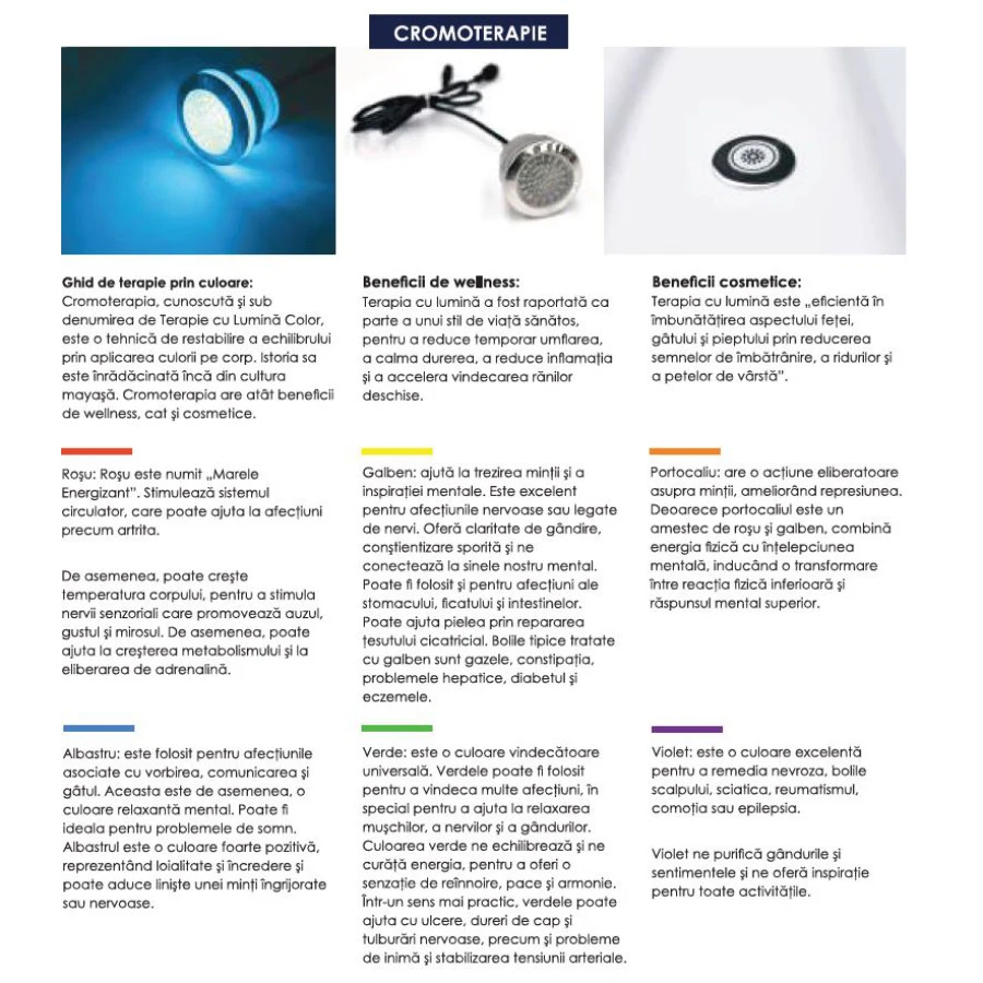 Sistemul de hidromasaj utilizează jeturi de apă pentru a crea un masaj plăcut, relaxând musculatura, stimulând circulația și reducând tensiunea acumulată. Adâncimea optimă permite o imersie completă, amplificând senzația de confort și relaxare profundă.
