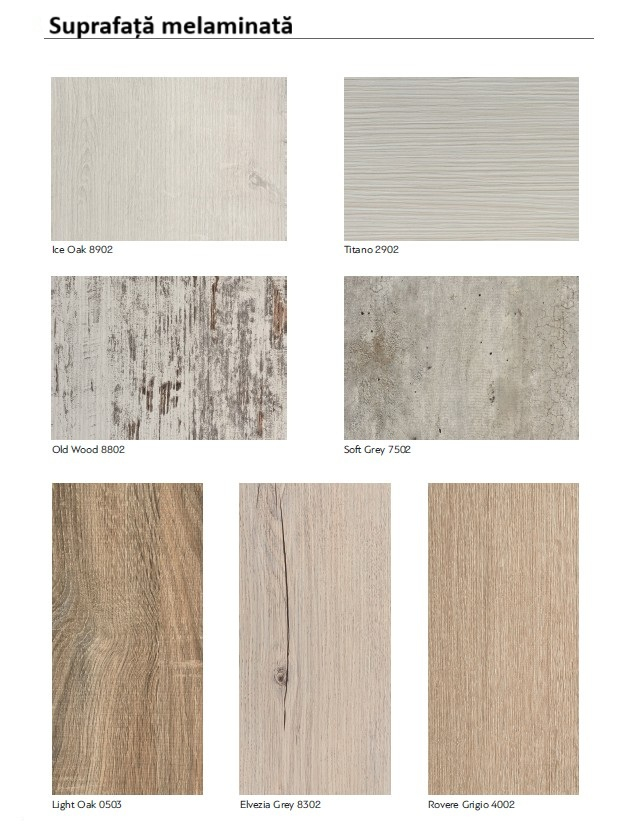 Acest set poate fi realizat și în alte dimensiuni, finisaje și combinații de culori, în funcție de preferințele și necesitățile fiecărui proiect.