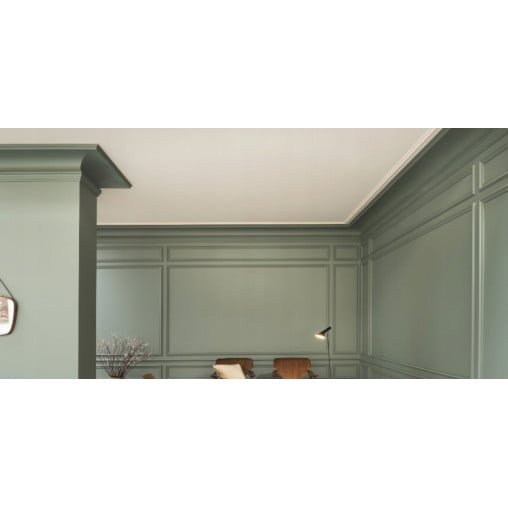 Alege cornisa decorativă C16 pentru a adăuga un plus de rafinament și armonie încăperii tale. Profilul său generos, cu dimensiuni bine proporționate, evidențiază perfect trecerea dintre pereți și tavan, transformând un spațiu simplu într-un decor elegant și sofisticat.