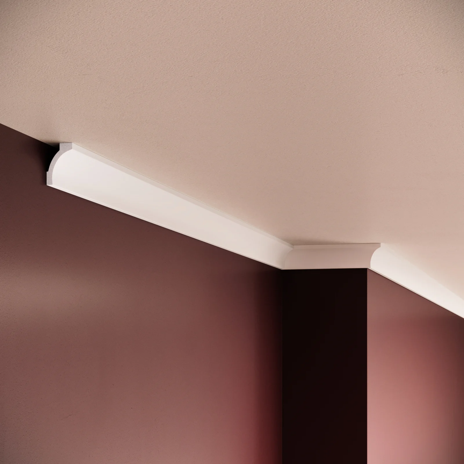 Materialul din polimer rigid conferă rezistență ridicată la lovituri, uzură și deformări, garantând un finisaj durabil. Cornișa se montează ușor cu adeziv special pentru profile decorative, iar suprafața sa poate fi vopsită în orice culoare pentru a se potrivi stilului interior.