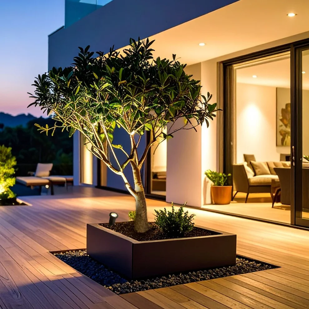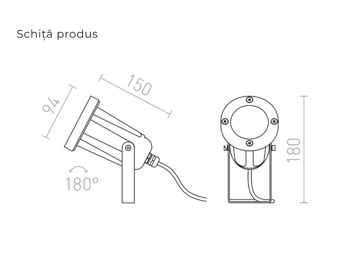 Reflector exterior din aluminiu solid. Corpul de iluminat este livrat cu un cablu de alimentare de 1,5 m fără terminație. Posibilitatea de a completa cu un vârf în sol (R11755).
