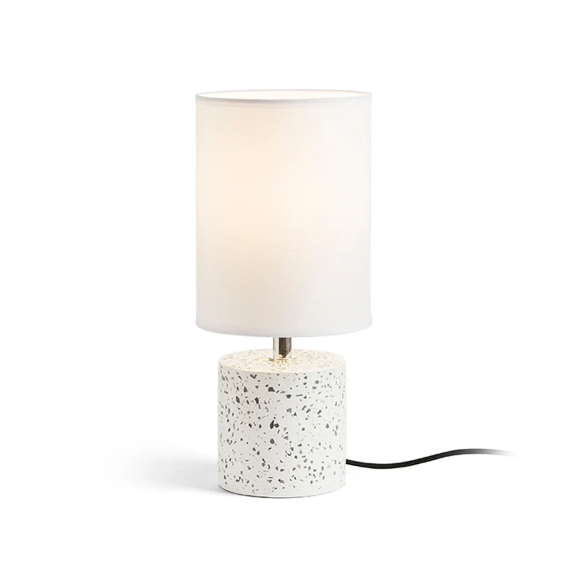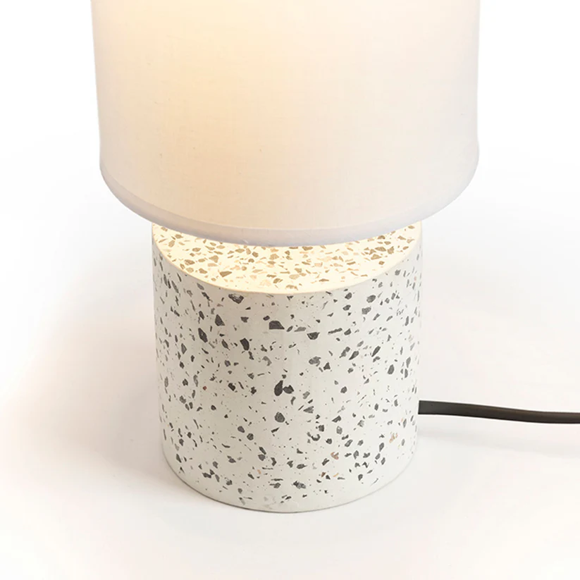 Veioză minimalistă cilindrica cu abajur din materail textil. Decorul fiecarui corp de iluminat este original.