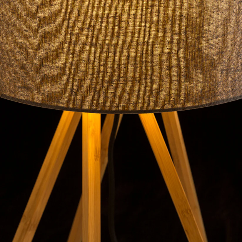 Lampă de masă din bambus cu o nuanță textilă. Acest articol este livrat neasamblat.