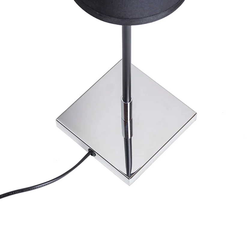 Lampă de masă cu abajur conic textil cu prindere E27. Combinație de crom și negru bară elegantă.