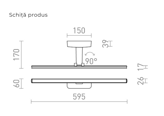 Lampă de perete LED cu design liniar, realizată din plastic, echipată cu cap basculant pentru reglarea direcției luminii. Ideală pentru iluminarea imaginilor, tablourilor sau decorațiunilor de perete.