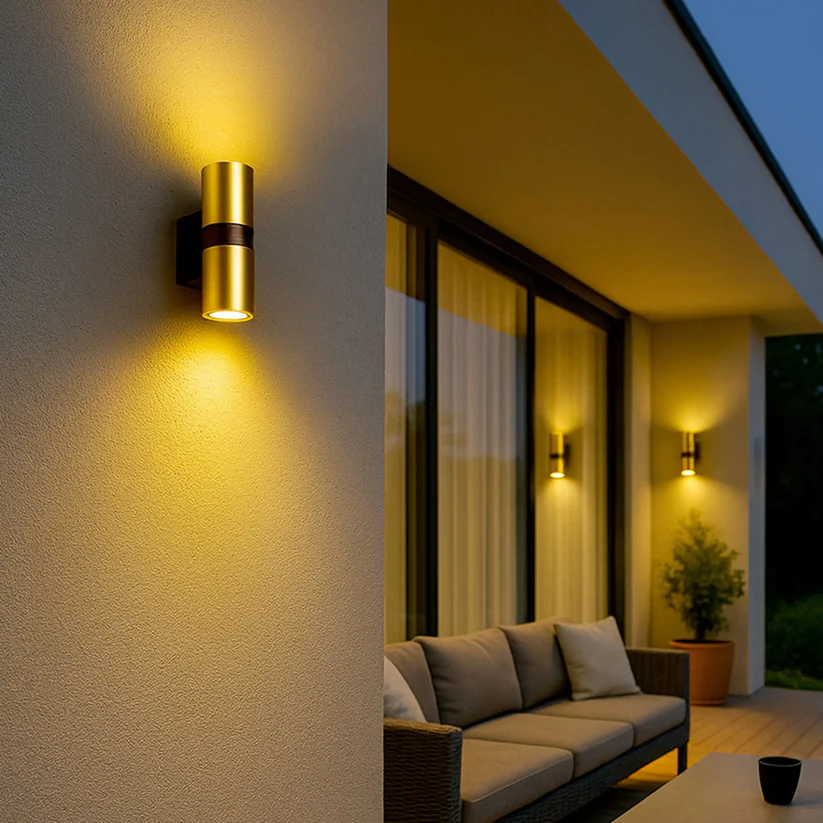 Lampa de exterior MANO este o aplică realizată dintr-o combinație elegantă de alamă și metal lăcuit negru, concepută pentru două surse de lumină LED cu soclu GU10. Designul său modern și contrastul de materiale adaugă rafinament și stil fațadelor, teraselor sau spațiilor exterioare.