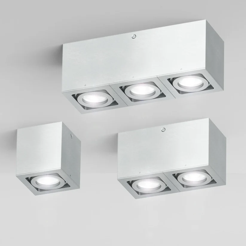 BERIT II este un corp de iluminat pătrat din aluminiu, montat la suprafață, proiectat pentru a găzdui becuri dichroice încastrate. Designul său modern permite bascularea pe două axe, oferind flexibilitate în direcționarea luminii și posibilitatea de a evidenția zone sau obiecte specifice din încăpere.