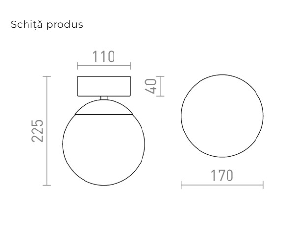 Corp de iluminat de tavan cu design compact și modern, prevăzut cu abajur din sticlă opală, care oferă o iluminare uniformă și plăcută. Este potrivit pentru utilizare în spații interioare, inclusiv în medii umede, precum băi sau bucătării.