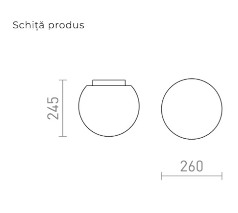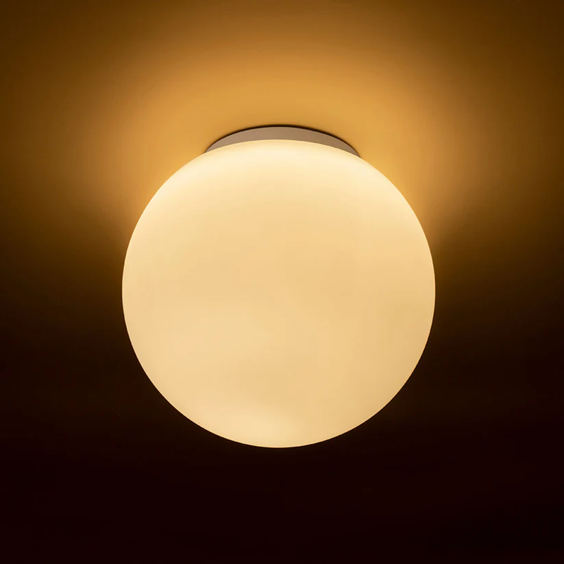 Corp de iluminat de tavan cu design compact și modern, prevăzut cu abajur din sticlă opală, care oferă o iluminare uniformă și plăcută. Este potrivit pentru utilizare în spații interioare, inclusiv în medii umede, precum băi sau bucătării.