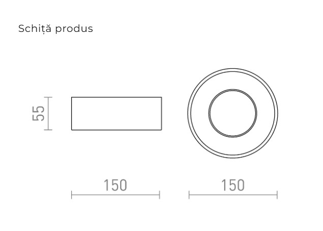 Plafonieră rotundă realizată din ipsos, concepută pentru surse de lumină LED cu soclu GX53. Designul său simplu și elegant permite integrarea facilă în diverse amenajări interioare, oferind un aspect curat și modern.