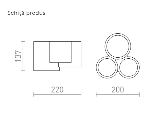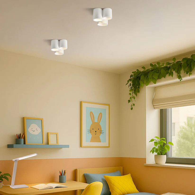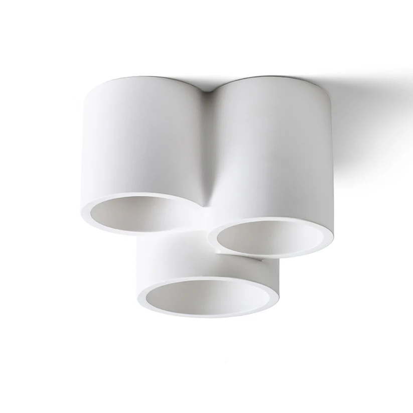 Plafonieră realizată din ipsos, compatibilă cu surse de lumină LED cu soclu GU10, concepută pentru a oferi o soluție de iluminat modernă și funcțională. Suprafața sa poate fi colorată cu vopsea de interior, permițând personalizarea completă în funcție de paleta cromatică a spațiului.