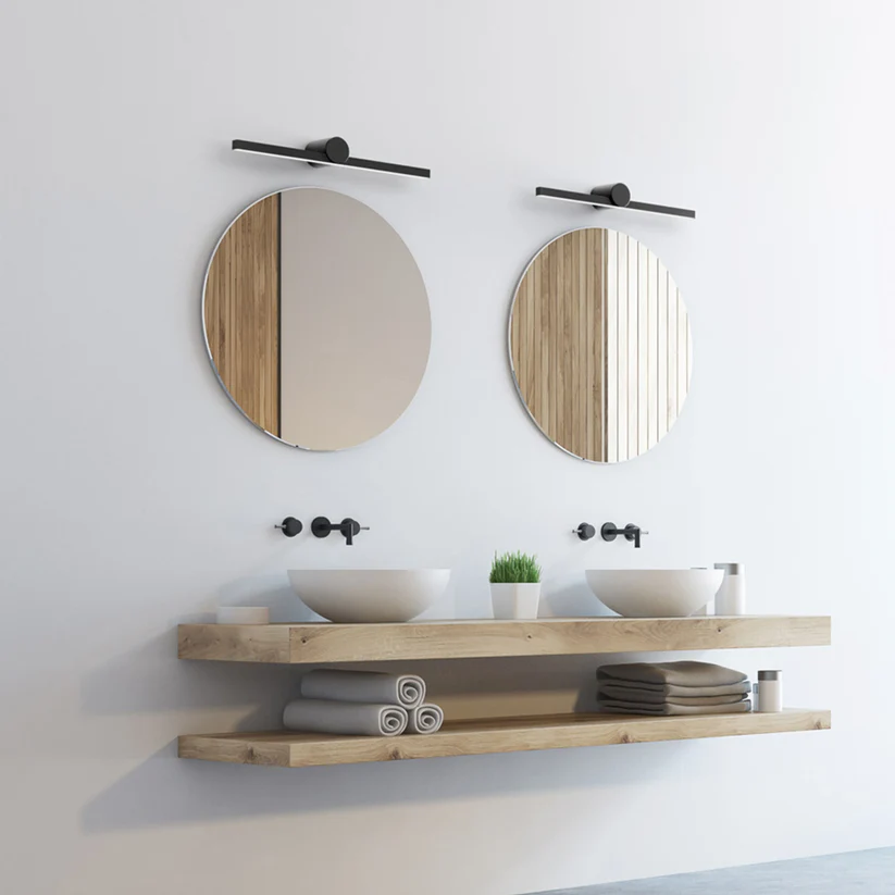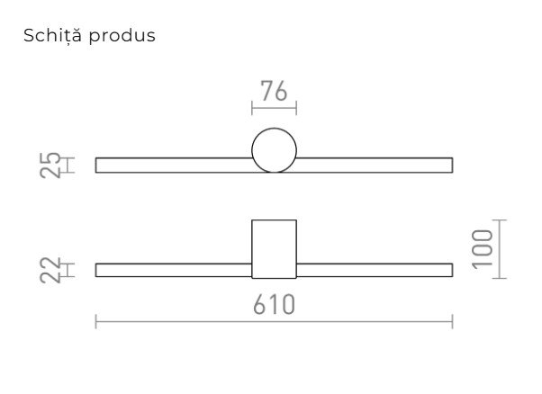 Lampă LED liniară pentru perete, concepută pentru montaj deasupra oglinzilor, cu iluminare direcționată în jos. Oferă lumină clară și eficientă, fiind ideală pentru băi și alte spații unde este necesară iluminare funcțională.
