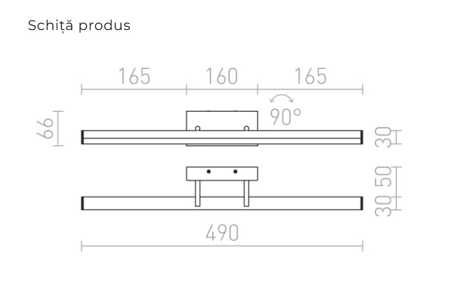 Dispozitiv de iluminat cu LED-uri liniare, prevăzut cu mecanism de înclinare, conceput pentru iluminarea optimă a oglinzilor sau tablourilor. Oferă lumină direcționată și controlată, ideală pentru evidențierea suprafețelor verticale.