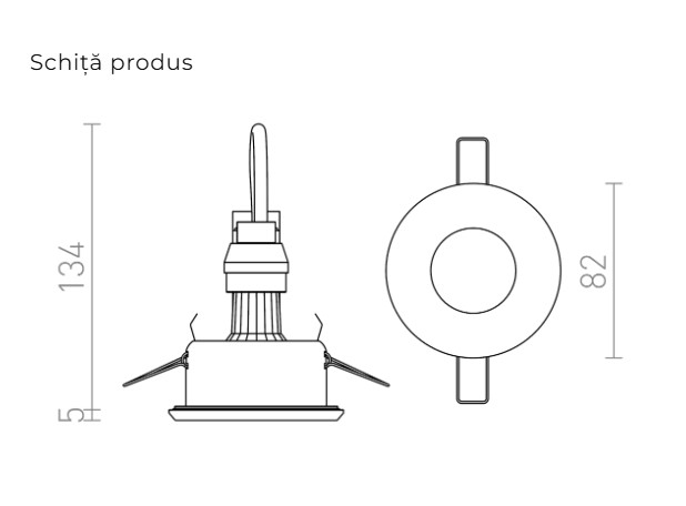 Corp de iluminat circular, încastrat, destinat instalării în tavan din gips-carton.