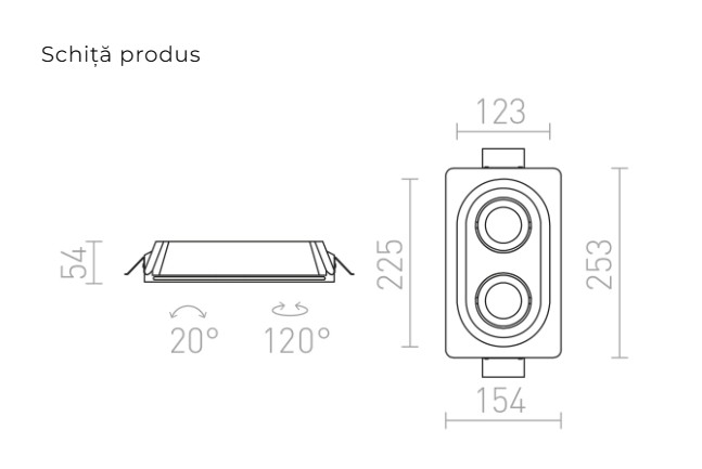 Corp de iluminat din gips cu deschidere ovală și finisaj fără ramă. Montare doar în plăci de rigips. Corpul de iluminat poate fi vopsit in culori interioare.