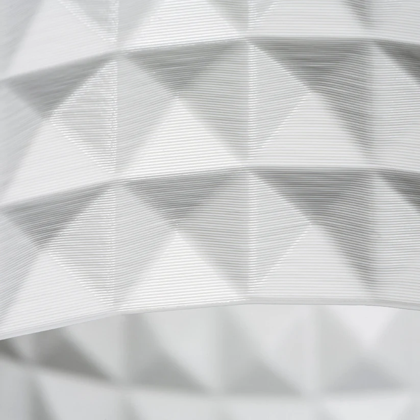 Lampă cu LED încastrat, destinată instalării în tavan din gips-carton, cu adâncime redusă și abajur decorativ. Nuanța decorativă este realizată prin imprimare 3D.