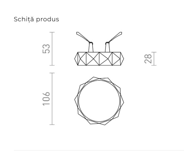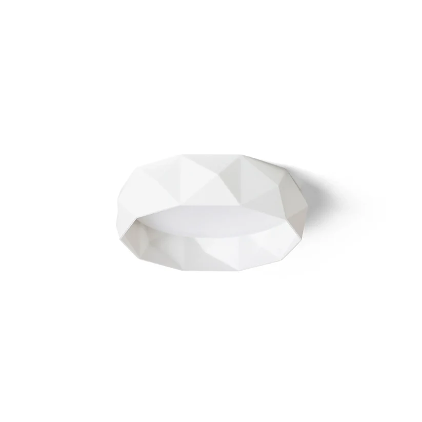 Lampă cu LED încastrat, destinată instalării în tavan din gips-carton, cu adâncime redusă și abajur decorativ. Nuanța decorativă este realizată prin imprimare 3D.