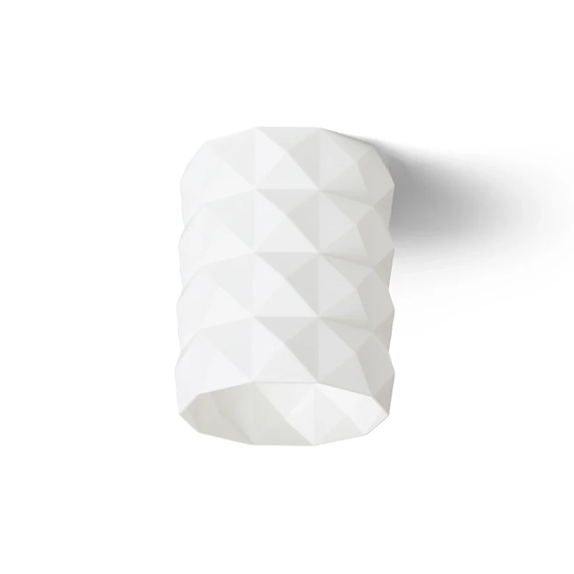 Lampă cu LED încastrat, destinată instalării în tavan din gips-carton, cu adâncime redusă și abajur decorativ. Nuanța decorativă este realizată prin imprimare 3D.