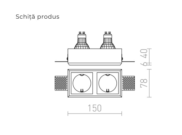 Corp de iluminat din ipsos fără cadru cu gauri circulare. Suprafata poate fi vopsita cu culori interioare. Montare numai in gips-carton.