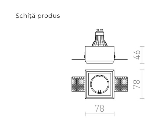 Corp de iluminat din ipsos fără cadru cu gauri circulare. Suprafata poate fi vopsita cu culori interioare. Montare numai in gips-carton.