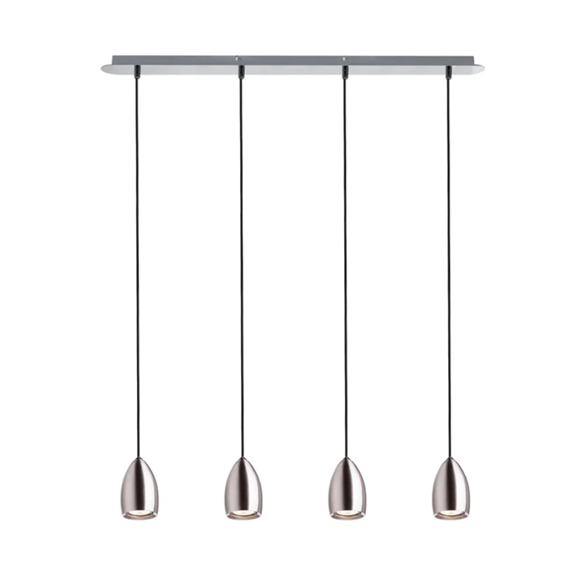 BABADES I este un corp de iluminat suspendat cu design modern și elegant, echipat cu abajur și bază de tavan disponibile în finisaj crom sau nichel mat, completate de un cablu textil negru. Această combinație conferă un aspect sofisticat și versatil, potrivit pentru diverse stiluri de amenajare.