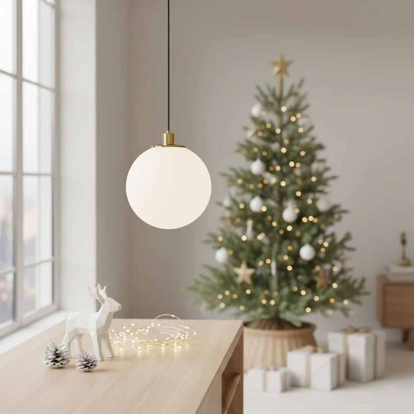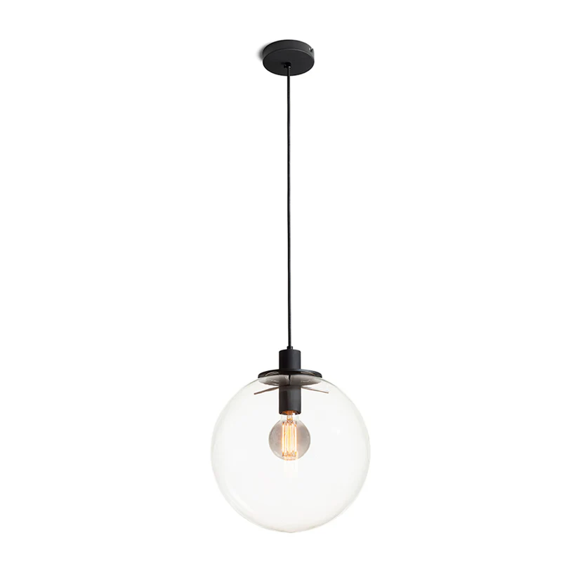 Pandantiv elegant în formă de sferă, realizat din sticlă, compatibil cu o sursă de lumină LED cu soclu E27. Diametru maxim: 80 mm.