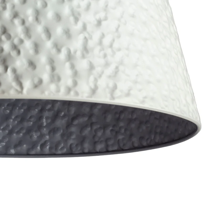 BUCKY este un corp de iluminat suspendat realizat din metal, cu un design distinctiv ce prezintă un decor fragmentat („sfărâmat”), oferind un joc interesant de lumină și umbre. Aspectul său sculptural transformă lumina într-un element decorativ de impact.