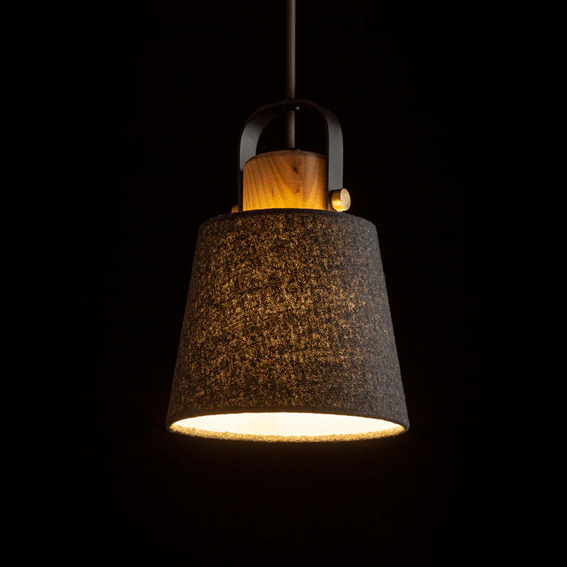 CHOUPETTE AGĂȚATĂ – Corp de iluminat suspendat este un pandantiv cu abajur din material textil și detalii din lemn, compatibil cu surse de lumină LED E27. Designul său cald și natural adaugă un accent decorativ elegant și modern, potrivit pentru crearea unei atmosfere primitoare.