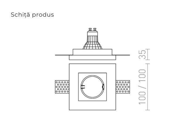 Corp de iluminat încastrat din gips cu finisaj fără rame pentru sursă de lumină cu soclu GU10. Montare doar în plăci de rigips.