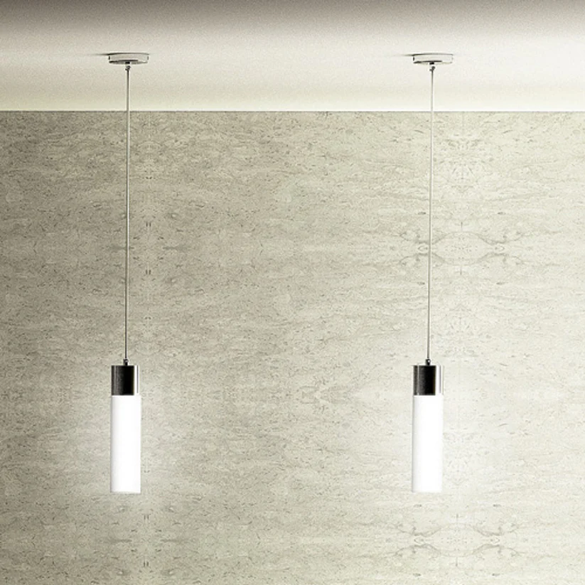 EIGHT SUSPENDAT – Corp de iluminat suspendat cu abajur din sticlă opală și accesorii cromate, ce combină eleganța și funcționalitatea într-un design modern. Abajurul oferă o lumină difuză și plăcută, potrivită pentru crearea unui ambient confortabil și sofisticat.