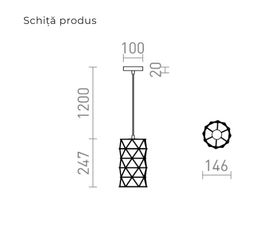 Pandantiv cu abajur din sârmă și cablu textil, conceput pentru utilizare cu o sursă de lumină E27 adecvată. Designul său aerisit pune în valoare becul și permite o bună dispersie a luminii, fiind ideal pentru interioare industriale, moderne sau vintage. Potrivit pentru living, bucătărie, dining sau spații comerciale, acest pandantiv adaugă un accent decorativ cu personalitate.