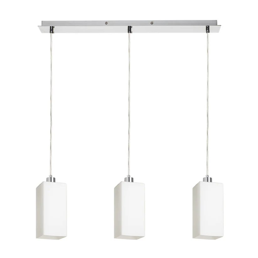Lampă liniară cu pandantive, echipată cu abajururi din sticlă, compatibilă cu surse de lumină LED E27, concepută pentru iluminat funcțional și decorativ. Designul său modern oferă o distribuție uniformă a luminii, fiind ideală pentru amplasarea deasupra mesei din dining sau bucătărie. Asigură un ambient plăcut și elegant, potrivit atât pentru interioare rezidențiale, cât și pentru spații moderne de tip horeca.