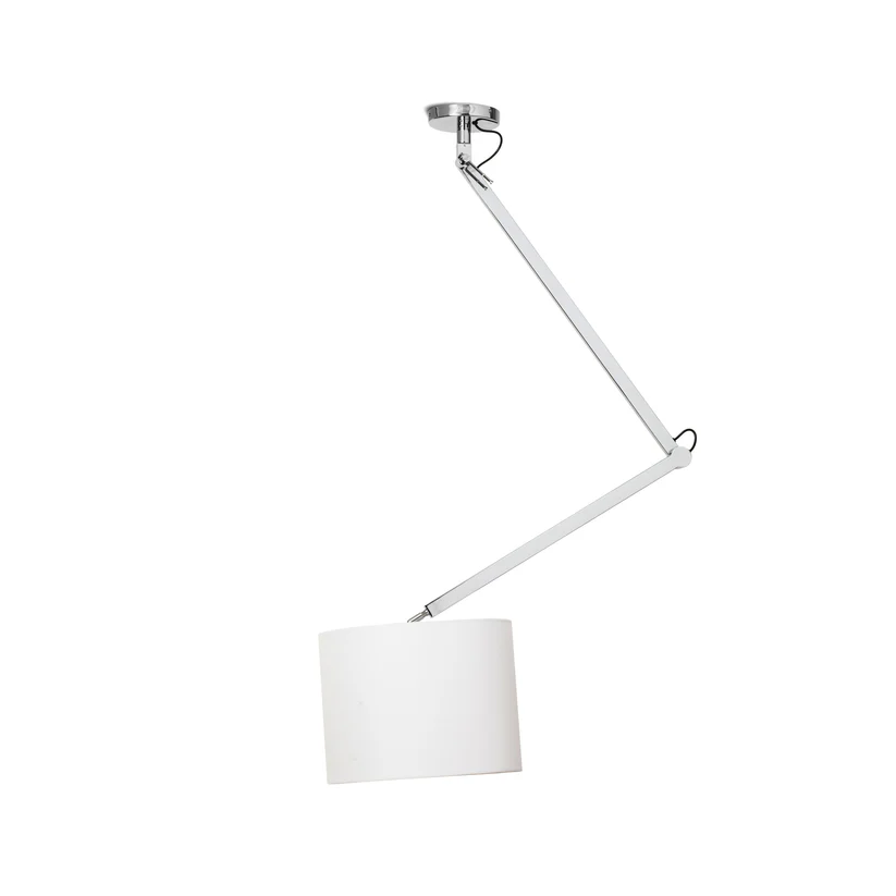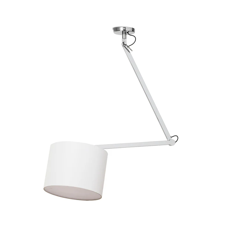 MADISON DE TAVAN – Corp de iluminat suspendat este o lampă reglabilă cu braț dublu montat pe tavan, concepută pentru a oferi flexibilitate și funcționalitate în iluminare. Este prevăzută cu abajur textil, care asigură o lumină caldă și plăcut difuză, contribuind la crearea unui ambient elegant și confortabil.