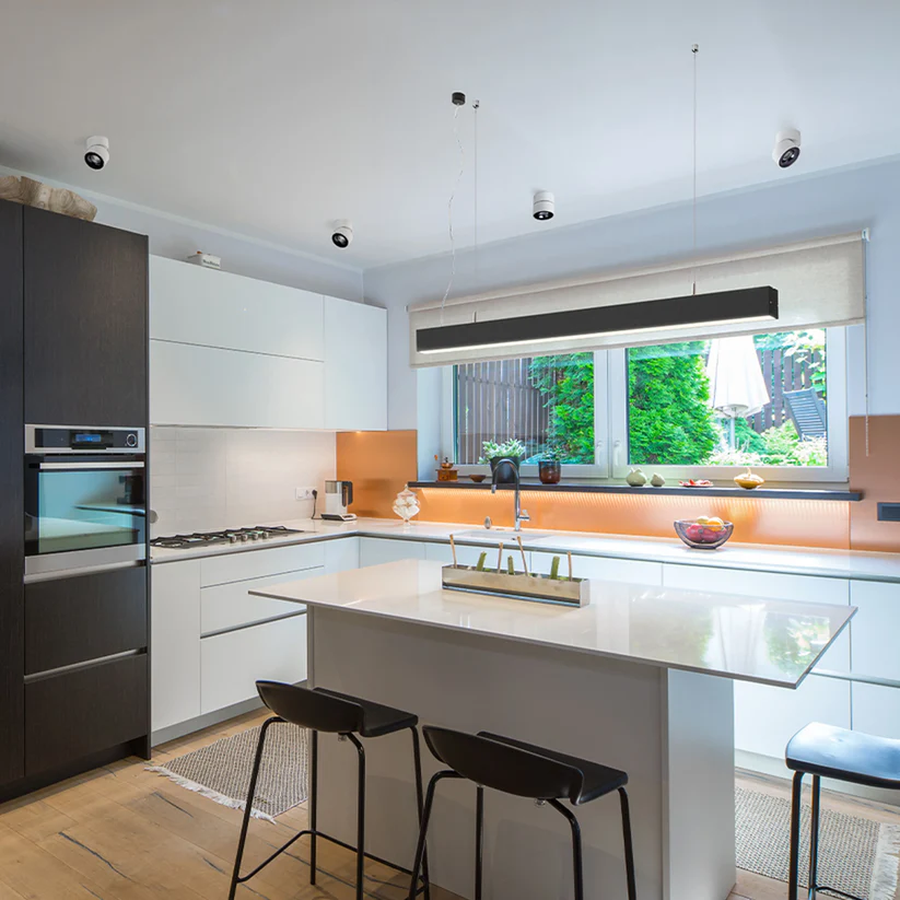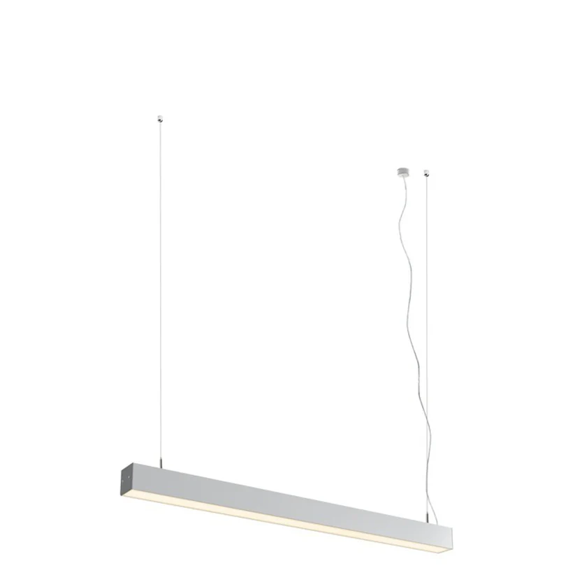 Corp de iluminat suspendat cu LED liniar, cu design minimalist și elegant, ideal pentru interioare moderne. Oferă o iluminare uniformă și plăcută, fiind potrivit pentru living, birouri, dining sau alte spații contemporane.