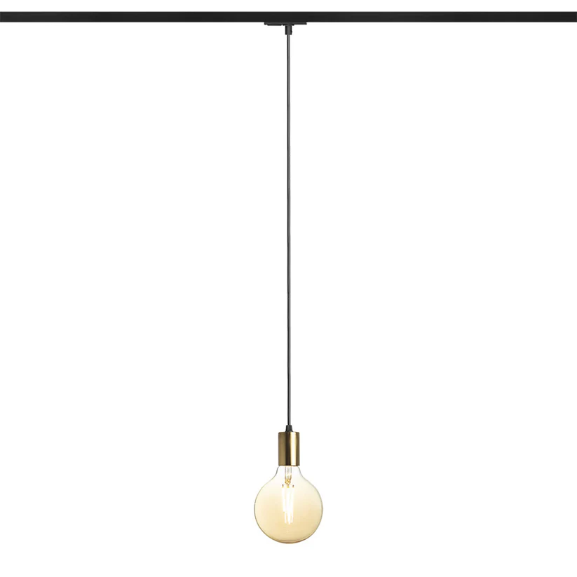 Pendul suspendat prevăzut cu priză din alamă, cablu textil și adaptor compatibil cu sistemele de șină cu 1 circuit.