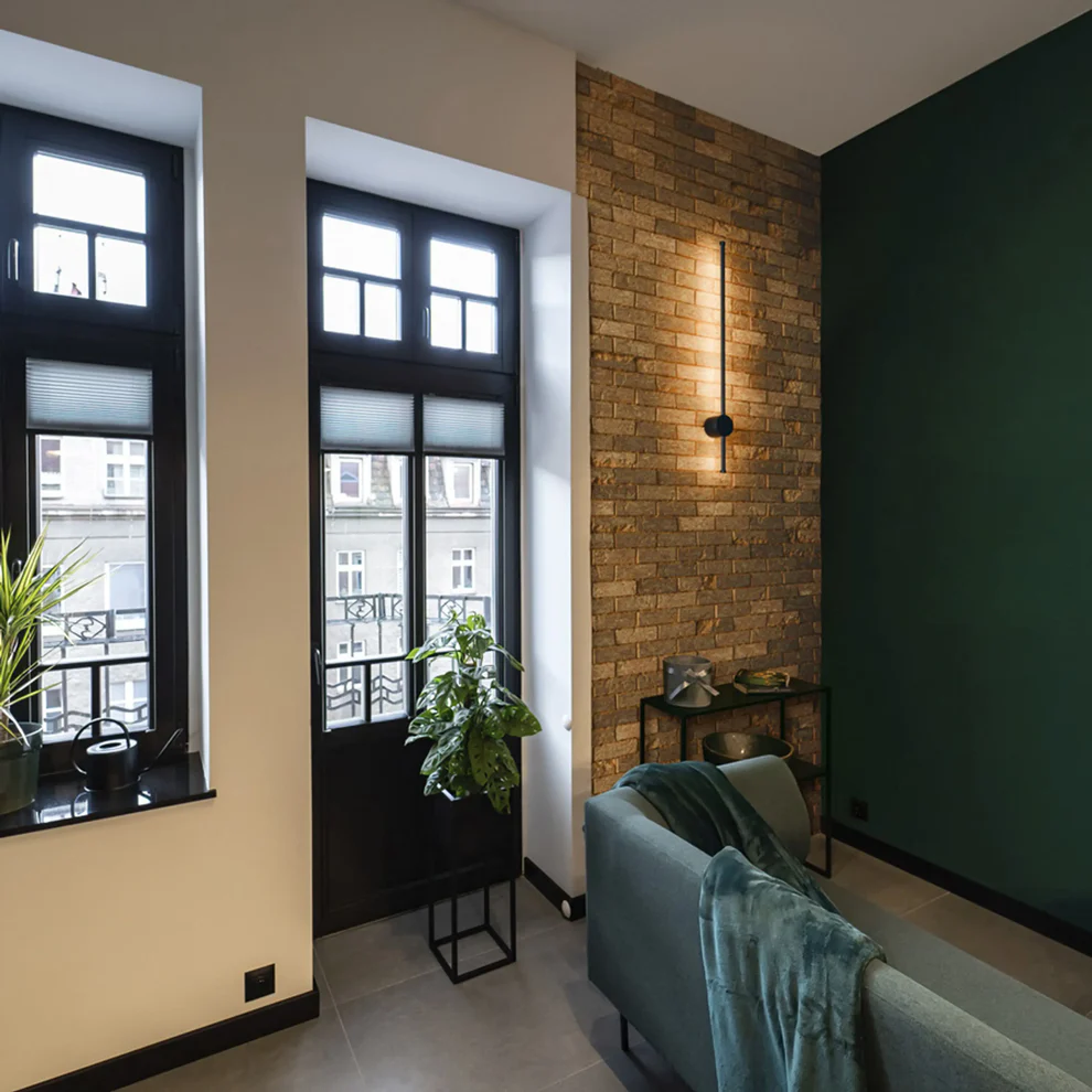 Aplică subțire LED de perete cu montare asimetrică pentru iluminare indirectă folosind reflexia pe perete. Corpul este potrivit atât pentru utilizare in exterior, cât şi pentru interior.