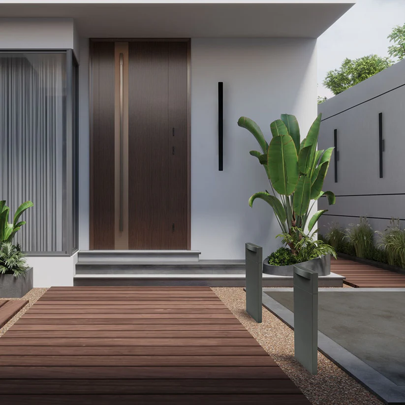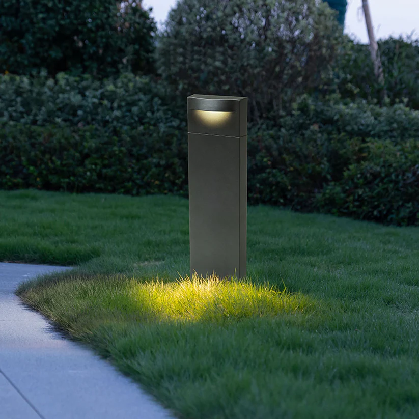 Bolard de exterior din aluminiu cu LED incorporat, pentru iluminarea diagonala in jos a căilor si a intrărilor.