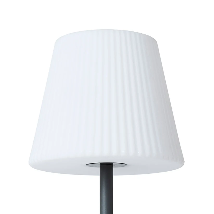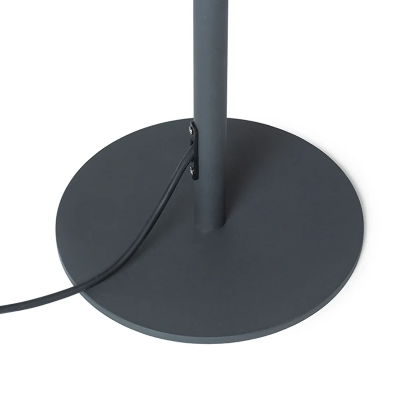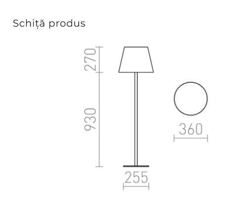 Lampă de podea cu abajur din plastic. Cablul de alimentare este echipat cu un conector de siguranță, pentru utilizare fără griji.