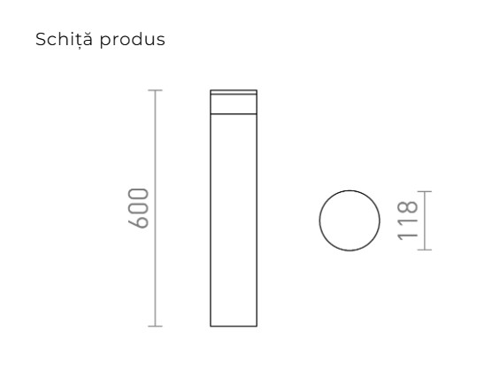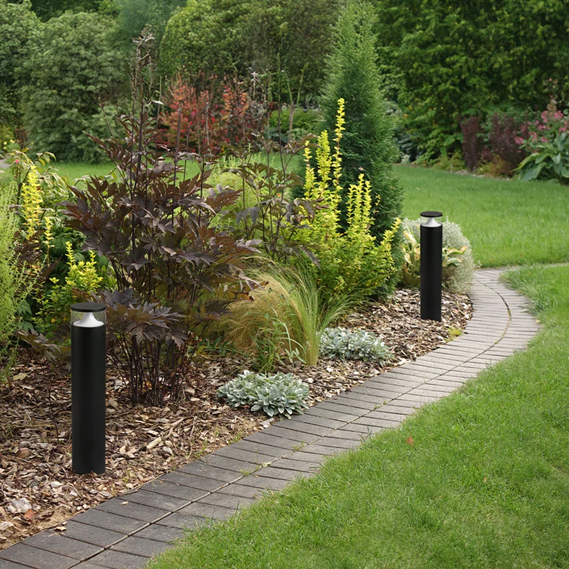 Bolard LED de exterior cu emisie de lumină moale care iradiaza uniform in lateral.