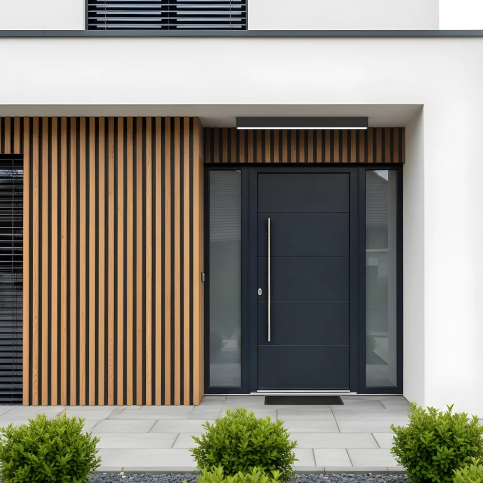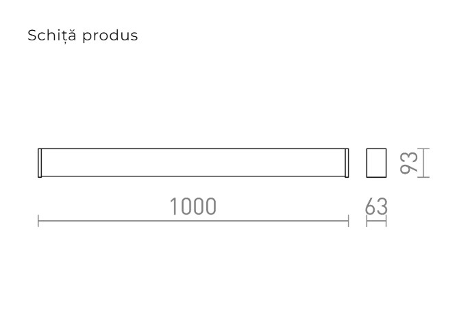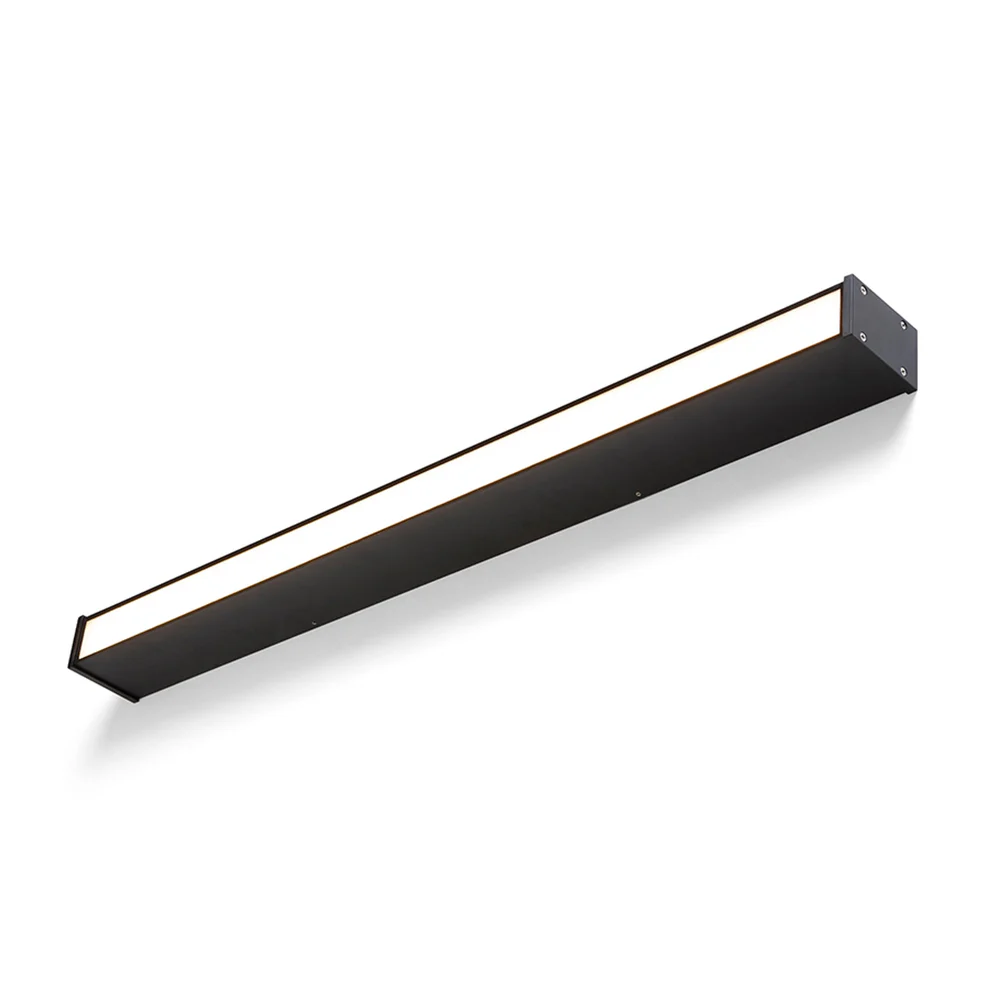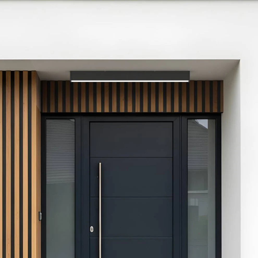 Lampa LED masivă alungită pentru utilizare in exterior, cu opțiuni de instalare pe tavan sau perete.