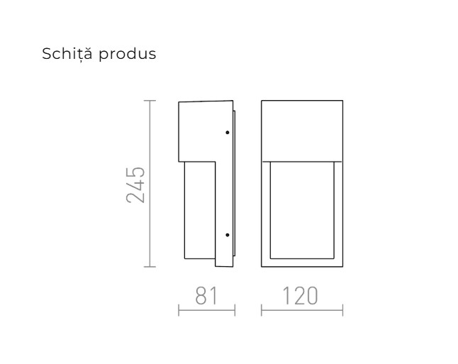 Corp de iluminat exterior din aluminiu turnat sub presiune, cu difuzor opal pentru montare pe perete. Potrivit pentru surse de lumina LED cu soclu E27.